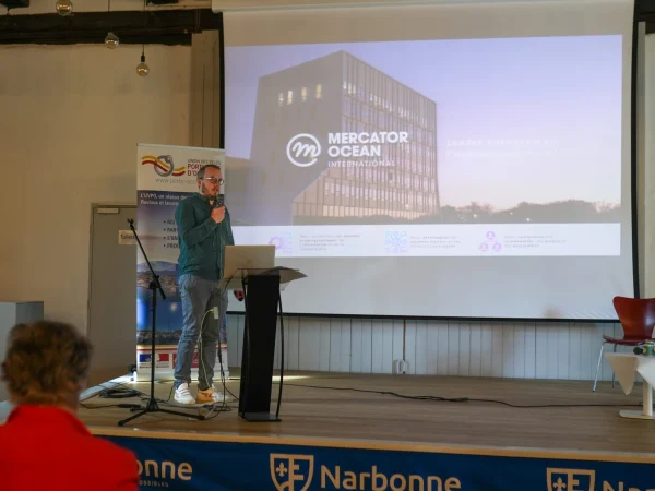 Quentin Gaudel a exposé le principe du jumeau numérique de l’océan (une réplique intéractive de l’océan, comme outil de de simulation de scénarios futurs et d’aide à la décision) développé par Mercator Ocean International et introduit la notion d’IA durable.