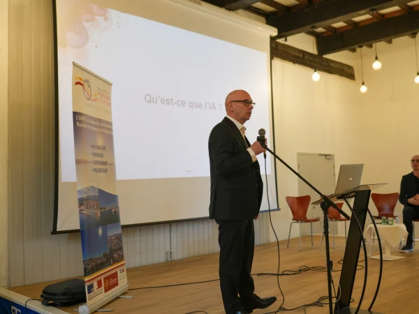 Joan-Manuel BACO, Secrétaire général de l’UVPO et directeur du port de Gruissan, a ouvert le colloque en soulignant l’importance pour chacun de comprendre les enjeux de l’IA, un outil devenu essentiel dont l’évolution rapide nécessite une adoption efficace et maitrisée.