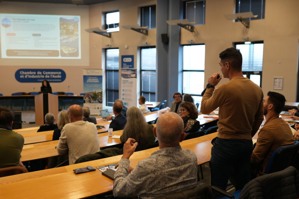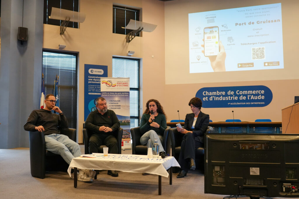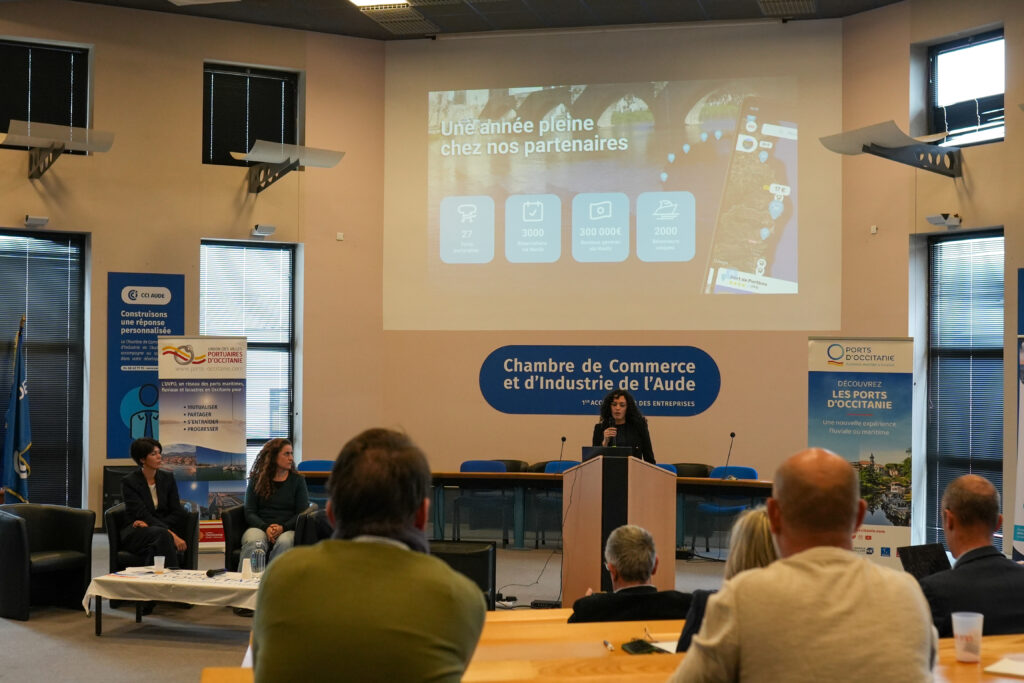 🔹Marie-Claire Kircher, reponsable communication pour la Capitainerie du Port de plaisance de Gruissan, a partagé son retour d’expérience sur la nouvelle application « client », mise en place au port de Gruissan par l’entreprise partenaire Alizée Soft avec l’intervention de son directeur Eric Faugere.