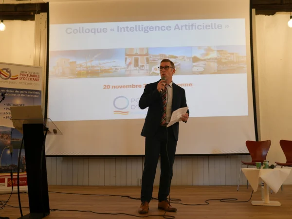 Joan-Manuel BACO, Secrétaire général de l’UVPO et directeur du port de Gruissan, a ouvert le colloque en soulignant l’importance pour chacun de comprendre les enjeux de l’IA, un outil devenu essentiel dont l’évolution rapide nécessite une adoption efficace et maitrisée.